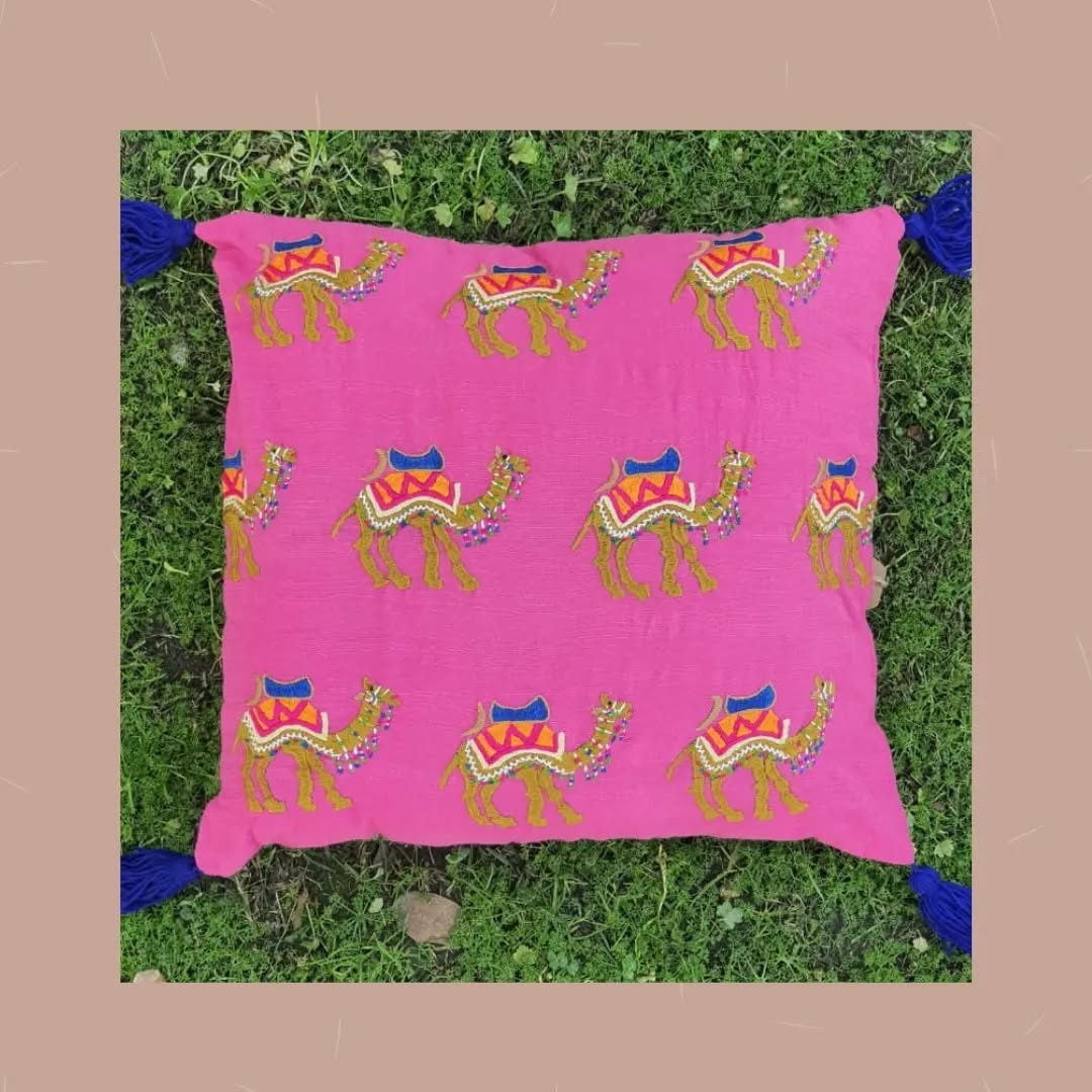 Technique: Hand embroidered by women artisans of Multan. Size: 18″×18″