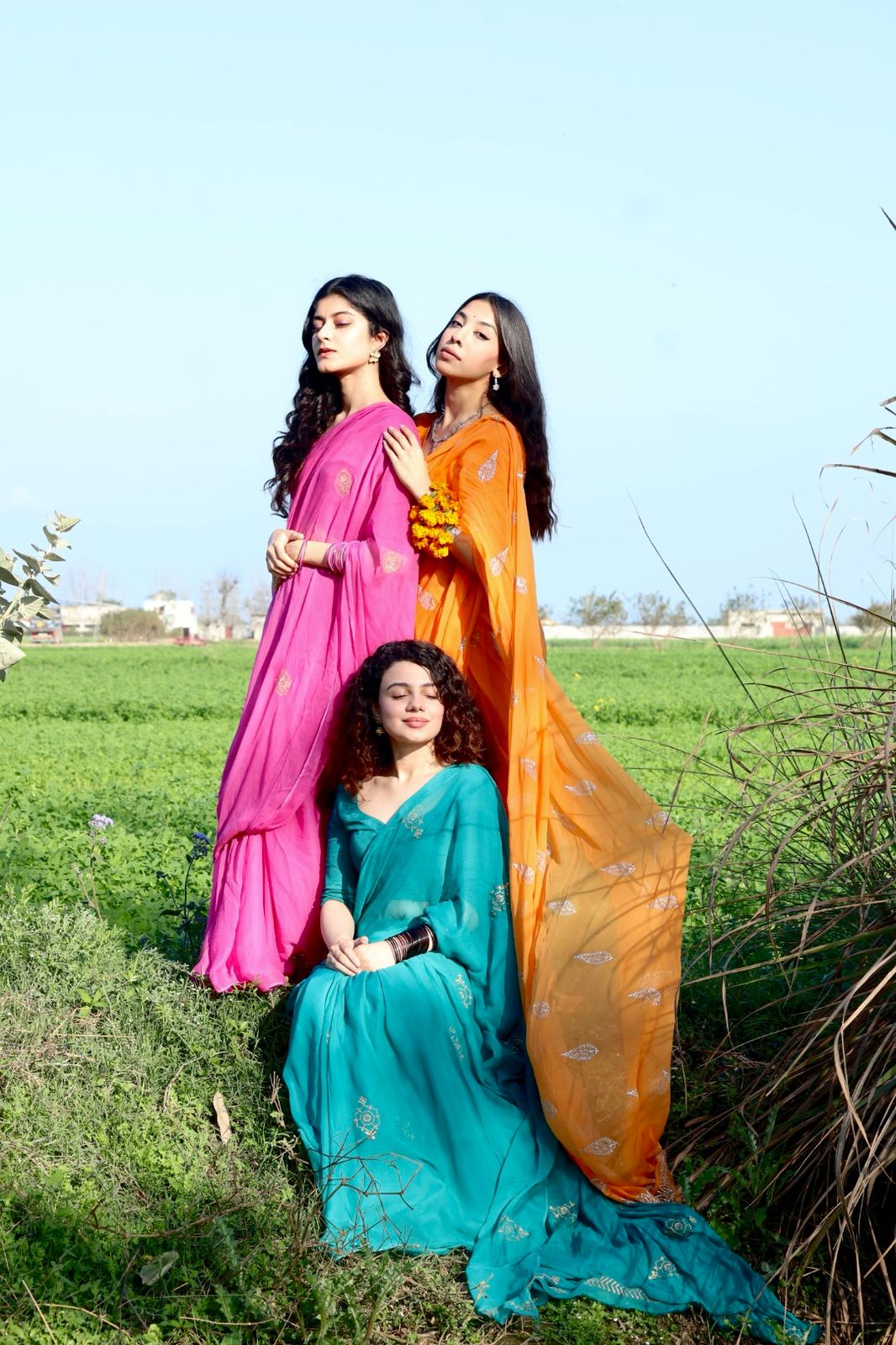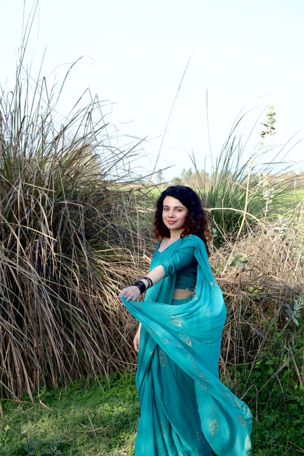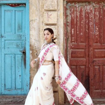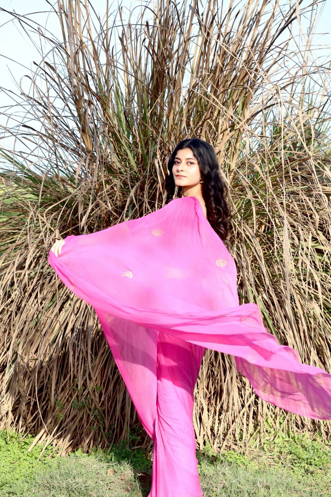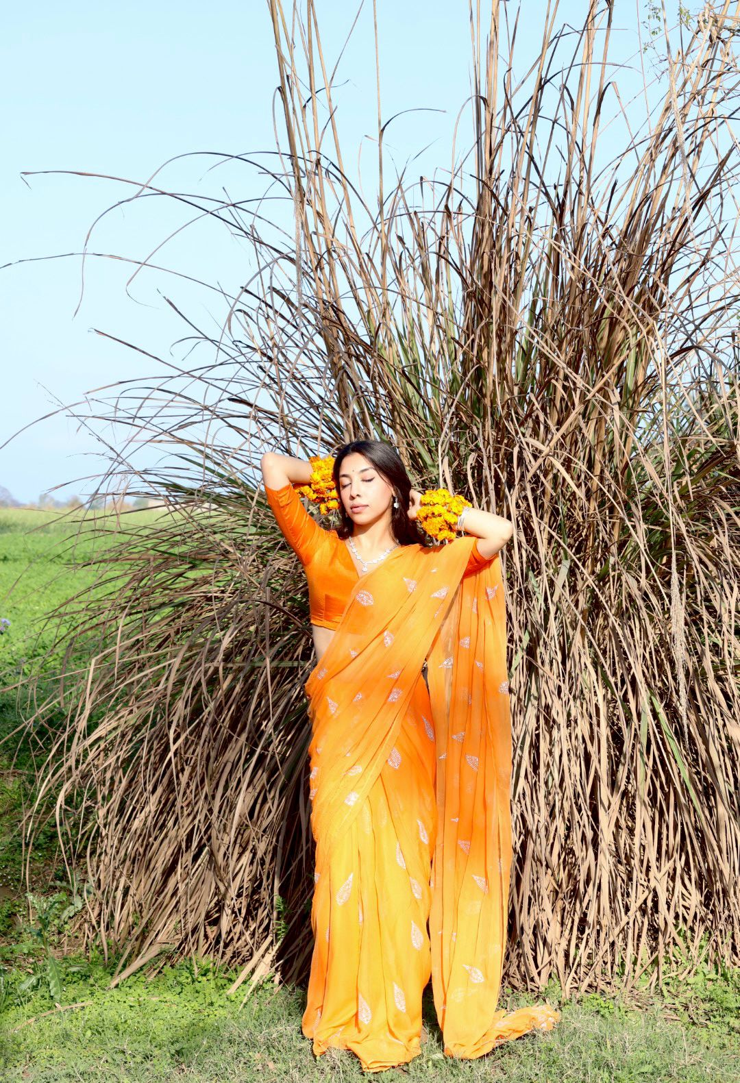 Each saaree is 7 yards including blouse material. Material: Chiffon.